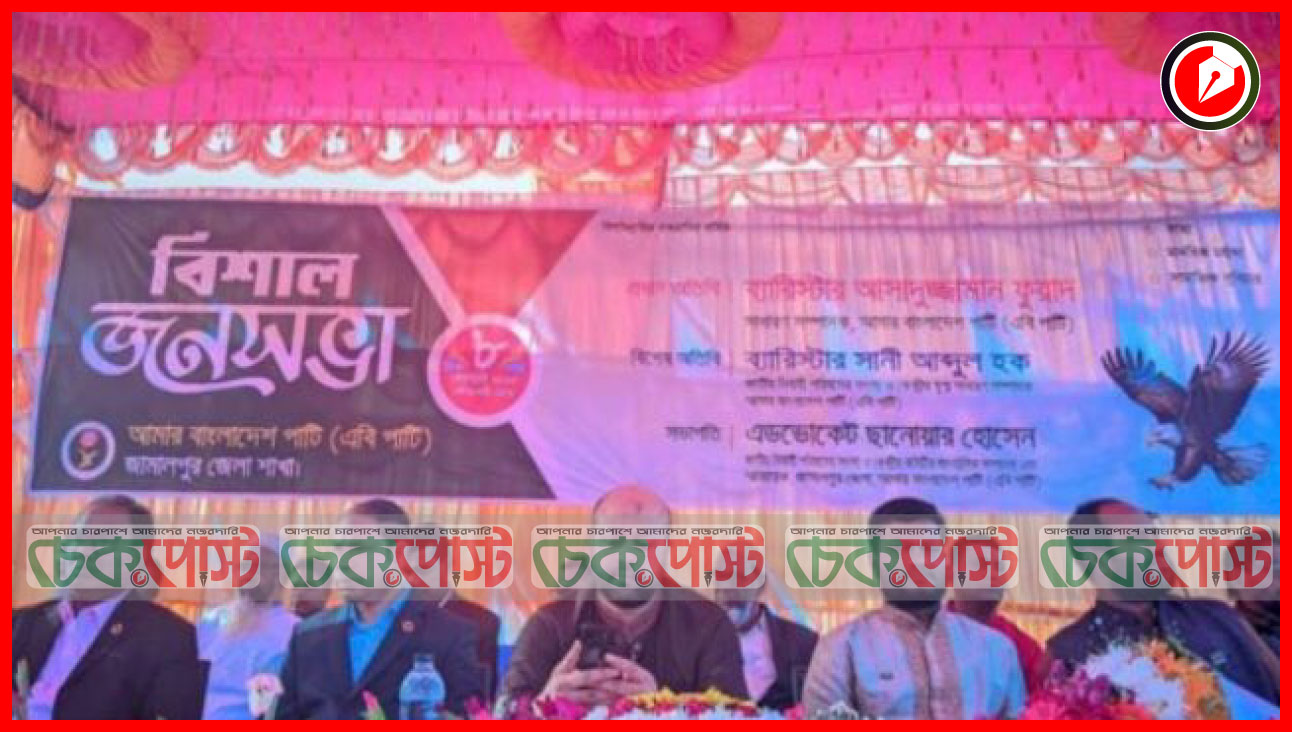 জামালপুর শহরের ফৌজদারী মোড় এলাকায় গত শনিবার বিকেলে আমার বাংলাদেশ পার্টি (এবি পার্টি) একটি জনসভা আয়োজন করে। সভাটি এবি পার্টির জাতীয় নির্বাহী কমিটির সদস্য, মোমেনশাহী বিভাগের সাংগঠনিক সম্পাদক এবং জামালপুর জেলা শাখার আহ্বায়ক এডভোকেট ছানোয়ার হোসেনের সভাপতিত্বে অনুষ্ঠিত হয়। প্রধান অতিথি হিসেবে বক্তব্য রাখেন এবি পার্টির কেন্দ্রীয় কমিটির সাধারণ সম্পাদক ব্যারিস্টার আসাদুজ্জামান ফুয়াদ। বিশেষ অতিথি হিসেবে উপস্থিত ছিলেন এবি পার্টির জাতীয় নির্বাহী পরিষদের সদস্য এবং কেন্দ্রীয় কমিটির যুগ্ম সাধারণ সম্পাদক ব্যারিস্টার সানী আব্দুল হক।