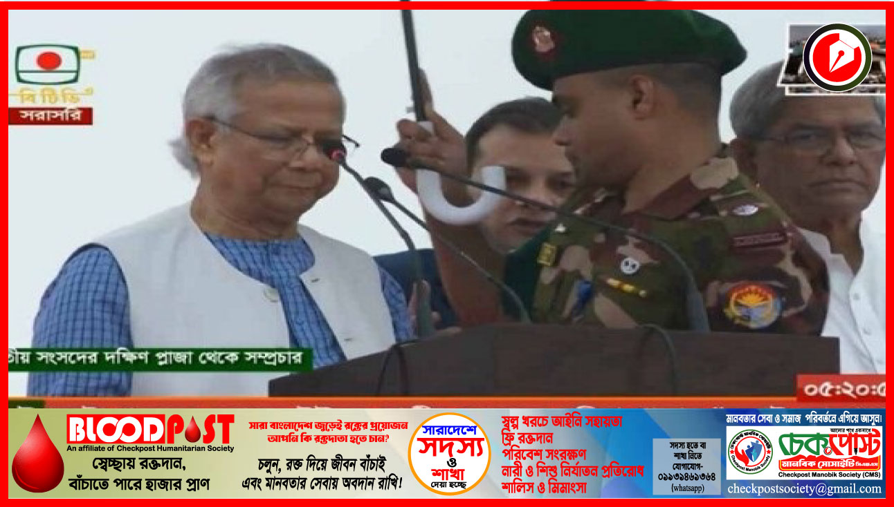 জুলাই গণঅভ্যুত্থান দিবস উপলক্ষ্যে আয়োজিত ‘জুলাই পুনর্জাগরণ’ অনুষ্ঠানে প্রধান উপদেষ্টা ড. মুহাম্মদ ইউনূস জুলাই ঘোষণাপত্র পাঠ করেছেন।