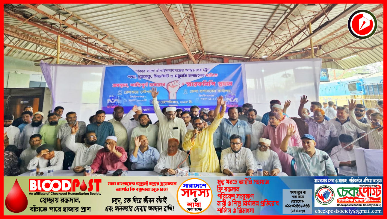 অবরোধ চলাকালে ঢাকা-রাজশাহী রুটের ধূমকেতু, পদ্মা, সিল্কসিটি ও মধুমতি এক্সপ্রেস ট্রেনের চাঁপাইনবাবগঞ্জ পর্যন্ত বর্ধিত করার দাবি তুলে ধরা হয়।