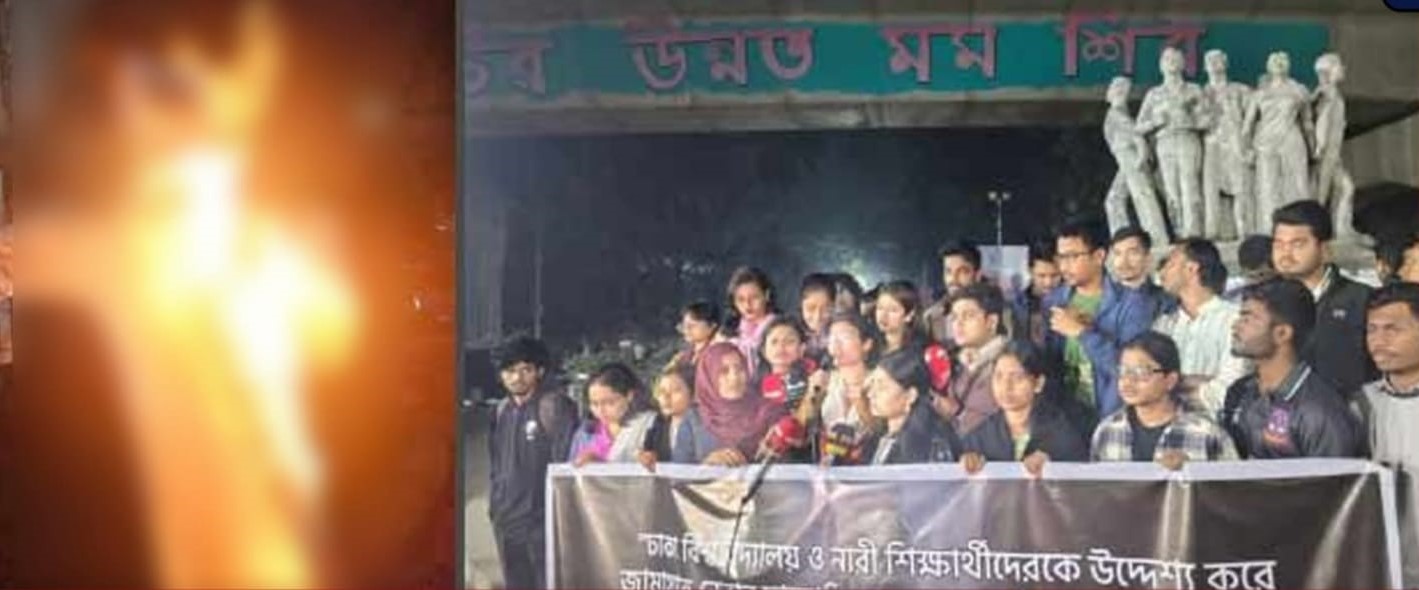 ঢাকা বিশ্ববিদ্যালয় ও নারী শিক্ষার্থীদের উদ্দেশ্যে কুরুচিপূর্ণ ও মানহানিকর বক্তব্যের প্রতিবাদে বিক্ষোভ মিছিল ও কুশপুতুল দাহ করেছেন বিশ্ববিদ্যালয়ের শিক্ষার্থীরা।