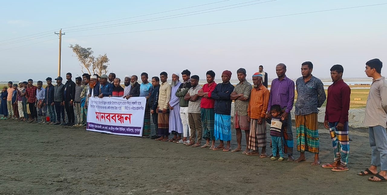 শনিবার বিকেলে মাড়ালা গ্রামের সামনে গ্রামবাসীর ব্যানারে এ মানববন্ধন অনুষ্ঠিত হয়। মানববন্ধনে গ্রামের প্রবীণ মুরুব্বি মফিজুল ইসলামের সভাপতিত্বে বক্তব্য রাখেন তানভির হাসান বাবলু, মাওলানা সাইদুল ইসলাম, রুবেল আহমেদ, রফিকুল ইসলাম, আলীনুর মিয়া, রাফিউল ইসলামসহ আরও অনেকে।