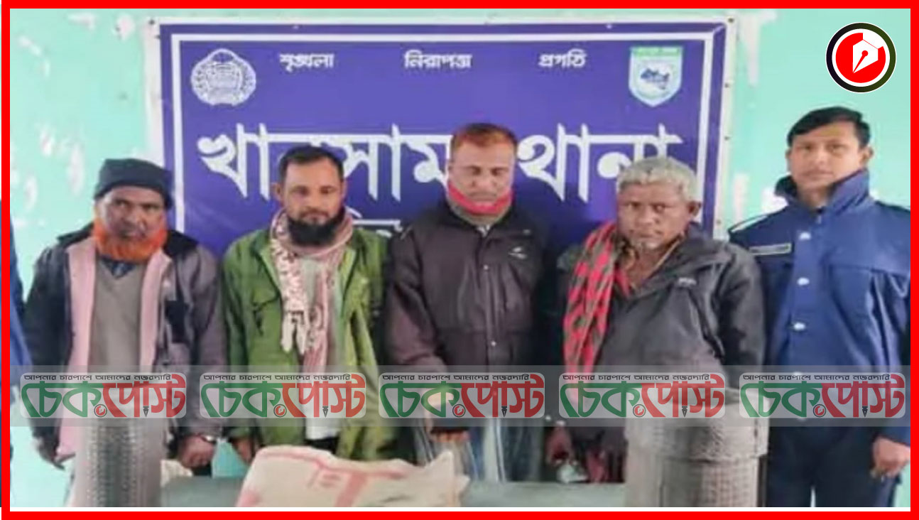 আটক ব্যক্তিরা হলেন, পার্শ্ববর্তী বীরগঞ্জ উপজেলার পাল্টাপুর ভোগডোমা এলাকার হাসান আলীর ছেলে ইউপি সদস্য শহিদুল ইসলাম (৪২), খানসামা উপজেলার খামারপাড়া ইউনিয়নের নেউলা এলাকার মৃত আছির উদ্দীনের ছেলে জাহিদুল ইসলাম (৫০), মৃত আব্দুর রউফের ছেলে আতিয়ার রহমান (৪৫), মৃত ফলিল উদ্দীনের ছেলে হাফিজ উদ্দীন (৫০)।