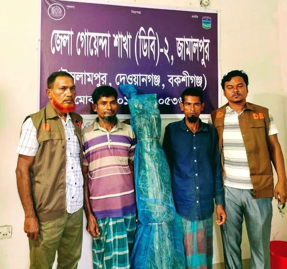 জামালপুর জেলা গোয়েন্দা শাখা (ডিবি-২) এর চৌকস টিম শুক্রবার (২৩ আগস্ট) দিবাগত রাত ২টার দিকে দেওয়ানগঞ্জ উপজেলার ডাংধরা ইউনিয়নের মাখনেরচর এলাকায় বিশেষ অভিযান পরিচালনা করেছে। অভিযানে নেতৃত্ব দেন এসআই নিরুপম নাগ (বিপিএম) এবং এসআই রফিকুল ইসলাম।