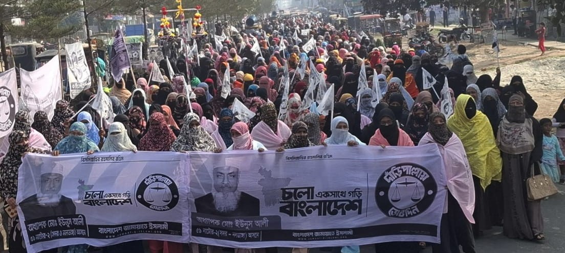 নাটোরে দাঁড়িপাল্লার পক্ষে মহিলা জামায়াতের বিশাল নির্বাচনী শোভাযাত্রা