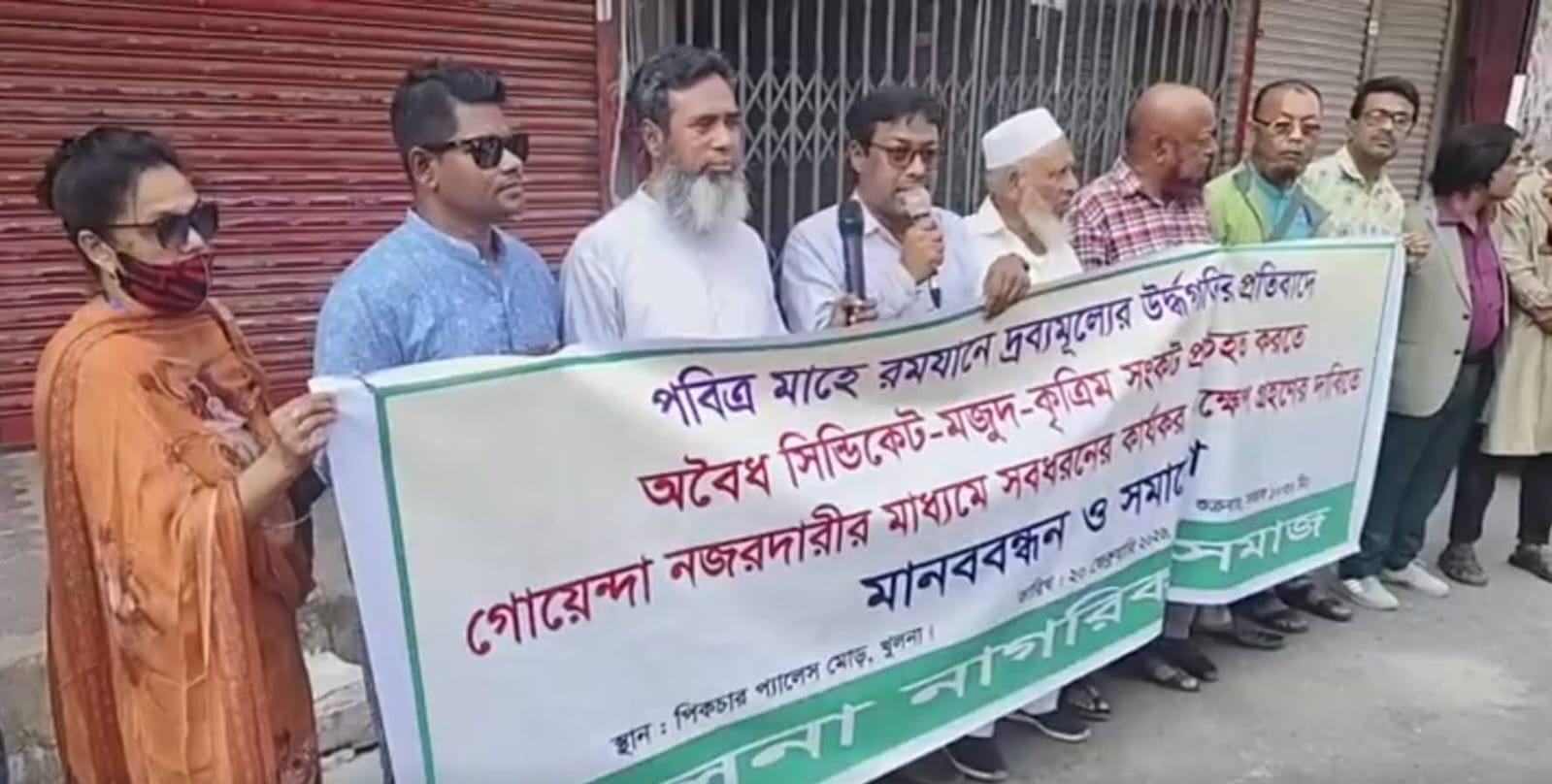 পবিত্র মাহে রমজানে দ্রব্যে মুল্যের উর্ধবগতির প্রতিবাদে খুলনায় নাগরিক সমাজের মানববন্ধন ও সমাবেশ অনুষ্ঠিত