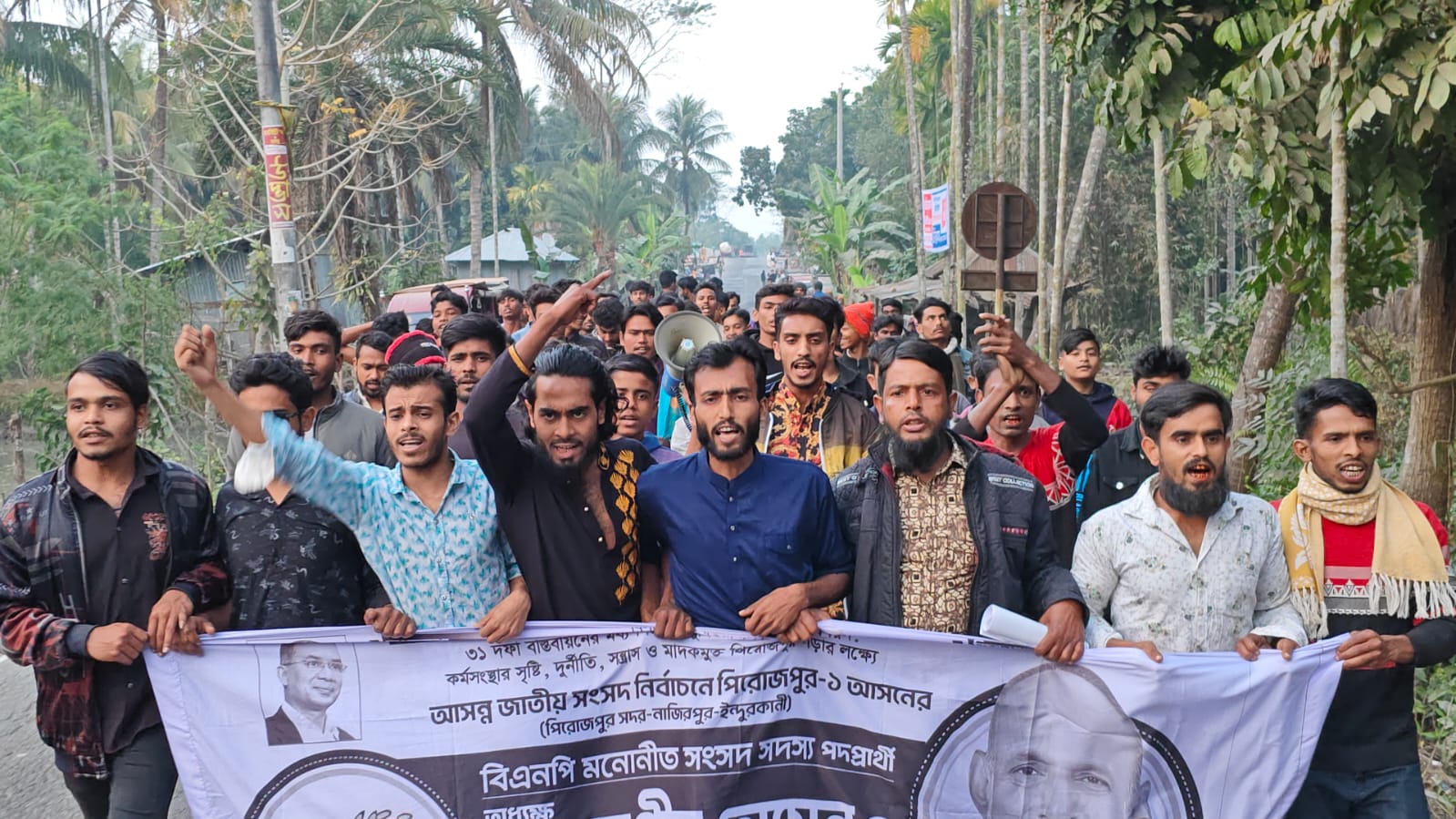 উক্ত পথসভায় ধানের শীষের প্রার্থী অধ্যক্ষ আলমগীর হোসেনের পক্ষে ভোট চেয়ে স্লোগান দেওয়া হয়।