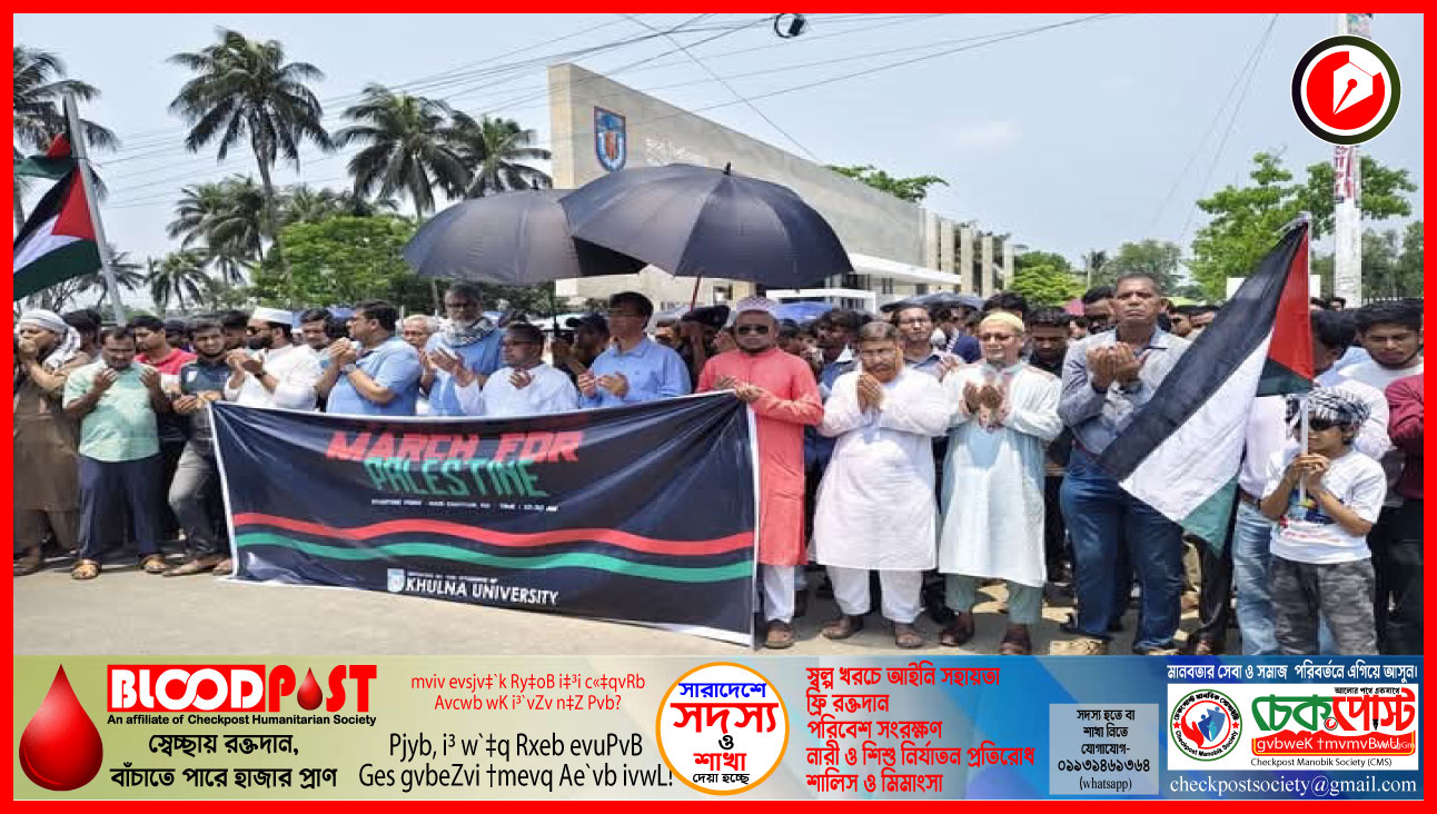 প্রসঙ্গত, ফিলিস্তিনের জনগণের প্রতি সংহতি জানিয়ে খুলনা বিশ্ববিদ্যালয় প্রশাসনও এ কর্মসূচিতে সমর্থন প্রকাশ করে। এ উপলক্ষে যেসব ডিসিপ্লিনে সোমবার স্পেশাল টার্মের পরীক্ষা নির্ধারিত ছিল, তা স্থগিত করা হয়।