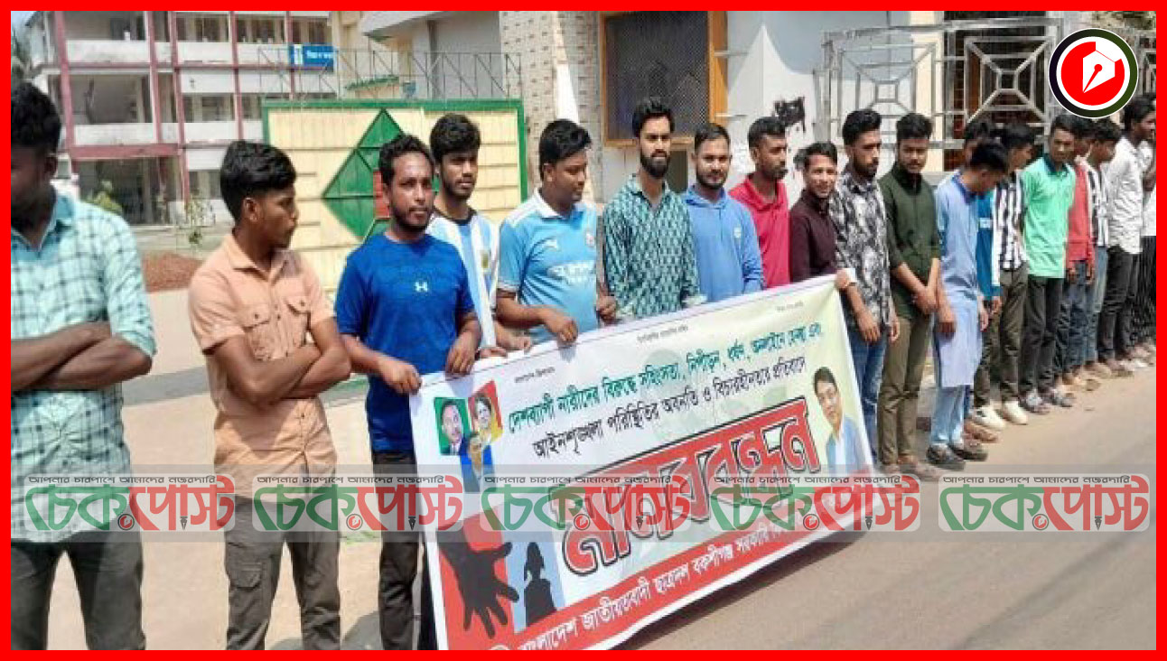 বকশীগঞ্জে ধর্ষণ ও নারীর প্রতি সহিংসতা প্রতিরোধে ছাত্রদলের মানববন্ধন অনুষ্ঠিত