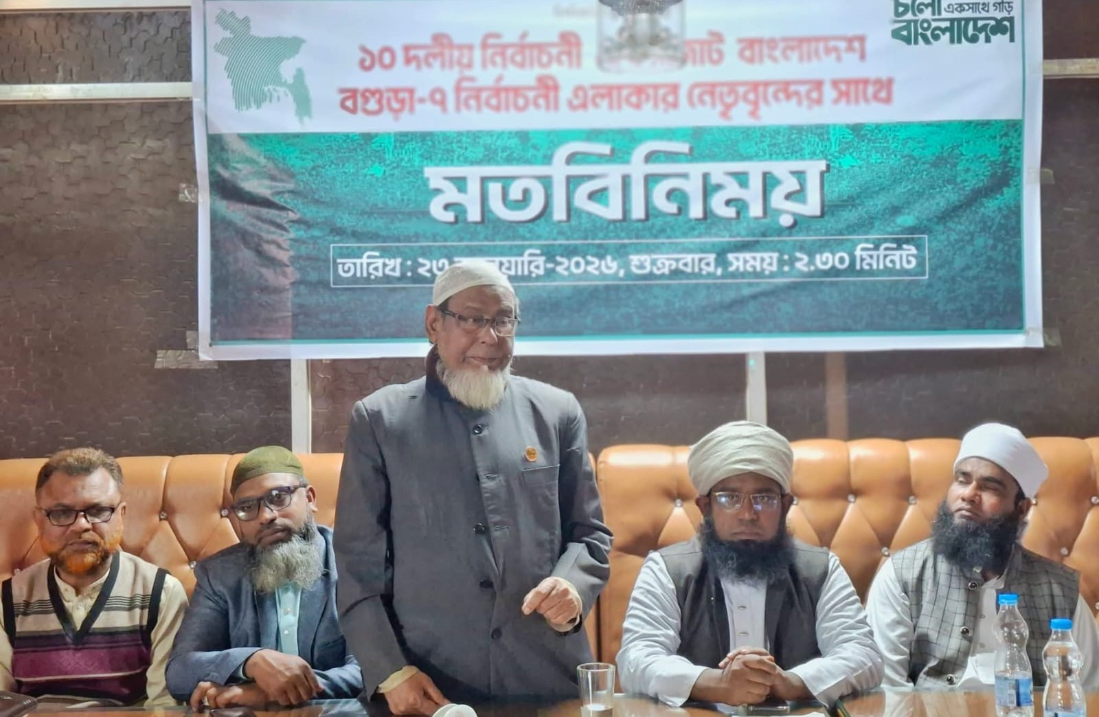 ১০ দলীয় ঐক্যবদ্ধ বাংলাদেশ জোটের বগুড়া-৭ (শাজাহানপুর–গাবতলী) সংসদীয় আসনের নেতৃবৃন্দের সঙ্গে মতবিনিময় করেছেন জোট মনোনীত এমপি প্রার্থী ও বাংলাদেশ শ্রমিক কল্যাণ ফেডারেশনের কেন্দ্রীয় সহ-সভাপতি গোলাম রব্বানী।