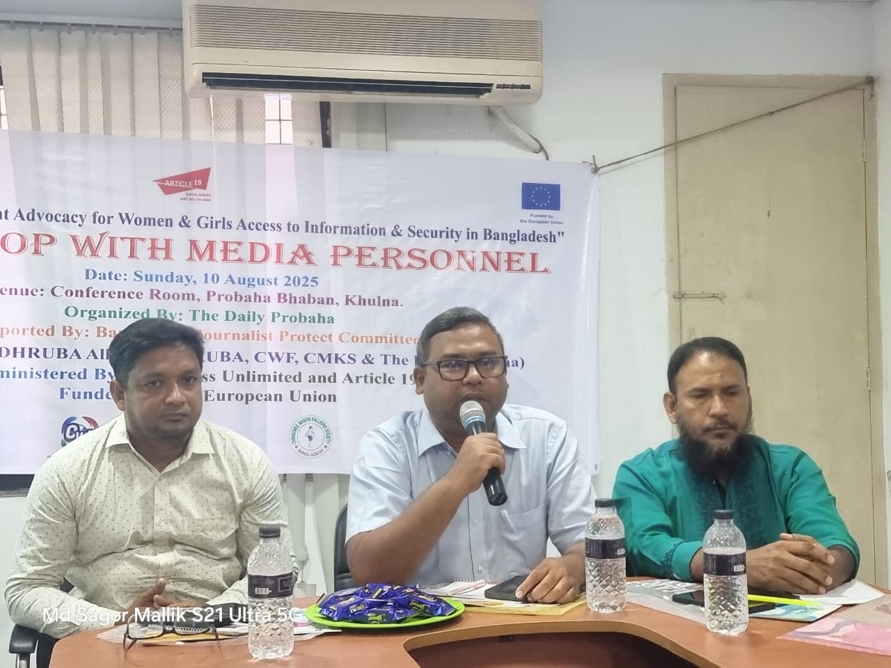 কলাবরেশন ল্যাব প্রজেক্ট রাউন্ড-৩ এর আওতায় ধ্রুব অ্যালায়েন্সের ব্যবস্থাপনায় আয়োজিত এই কর্মশালায় খুলনা ও আশপাশের জেলা থেকে ইলেকট্রনিক, প্রিন্ট ও অনলাইন মাধ্যমের ৩০ জন সাংবাদিক অংশ নেন। কর্মশালায় নারীদের নিরাপত্তা নিশ্চিত করে সংবাদ প্রকাশ, কিশোরীদের তথ্যের প্রবেশাধিকার ও সাংবাদিকদের পেশাগত সুরক্ষার নানা দিক তুলে ধরা হয়।