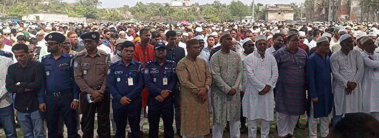 বাগেরহাটের মোংলায় শুক্রবার (১৩ মার্চ) জুম্মার নামাজ শেষে রামপাল উপজেলা পরিষদ মাঠে এ জানাজার নামাজ অনুষ্ঠিত হয়। এ সময় উপস্থিত ছিলেন স্থানীয় সংসদ সদস্য এবং পরিবেশ, বন ও জলবায়ু পরিবর্তন মন্ত্রণালয়ের প্রতিমন্ত্রী লায়ন ডক্টর শেখ ফরিদুল ইসলামসহ বাগেরহাট জেলা ও স্থানীয় প্রশাসনের শীর্ষ কর্মকর্তারা।