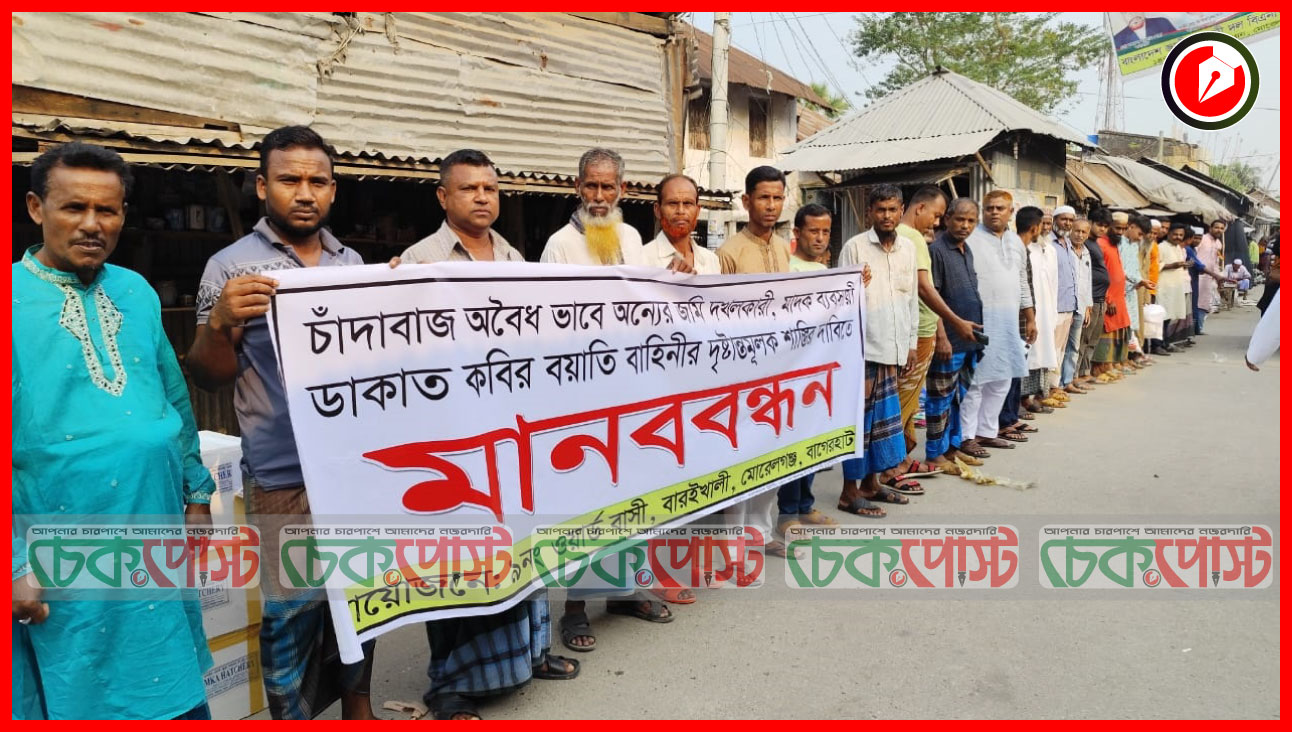 বাগেরহাটের মোরেলগঞ্জে এক চিহ্নিত অপরাধীকে গ্রেফতারের দাবিতে মানববন্ধন অনুষ্ঠিত হয়েছে। শুক্রবার (২১ মার্চ) সকাল ১০টার দিকে তেতুলবাড়িয়া বাজার এলাকায় শতাধিক ভুক্তভোগী পরিবারের সদস্যরা মানববন্ধন ও বিক্ষোভ মিছিল করেন। তারা ভাষন্ডা গ্রামের সত্তার বয়াতীর ছেলে কবির বয়াতীকে দ্রুত গ্রেফতারের দাবি জানান।