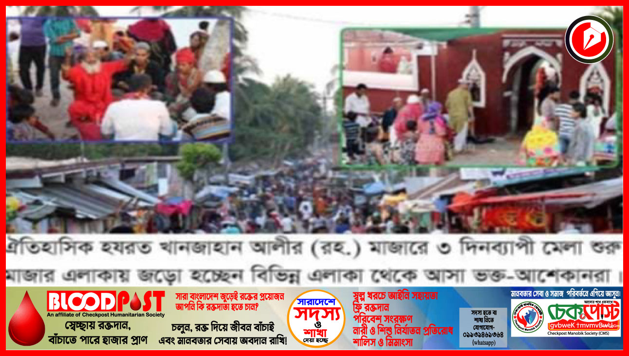 বাগেরহাটে প্রায় ছয়শ বছরের পুরনো ঐতিহাসিক হযরত খানজাহান আলী (রহ.)-এর মাজার প্রাঙ্গণে শুরু হয়েছে তিনদিনব্যাপী বার্ষিক মেলা। চৈত্র মাসের পূর্ণিমা তিথি উপলক্ষে শুক্রবার (১১ এপ্রিল) থেকে শুরু হওয়া এই মেলা চলবে আগামী রবিবার পর্যন্ত।