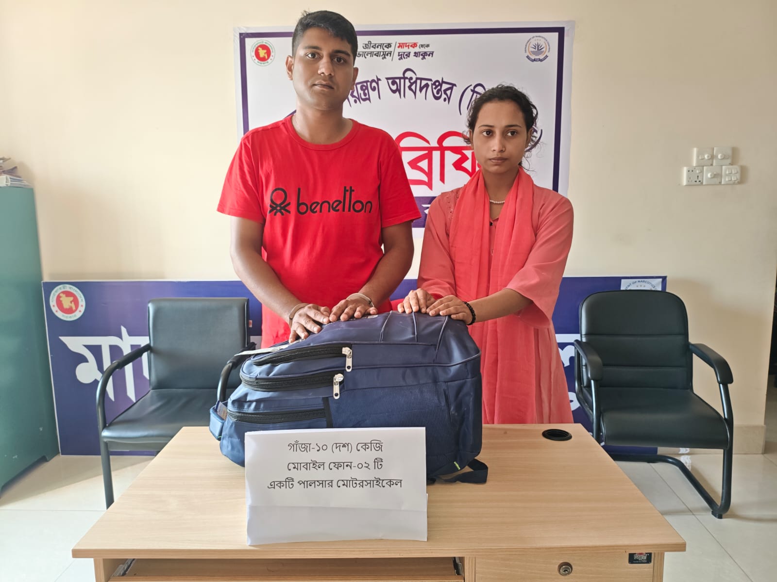 মাদকদ্রব্য অধিদপ্তর জানায়, বাগেরহাট জেলার সদর থানাধীন সিএন্ডবি বাজারস্থ বীর মুক্তিযোদ্ধা লিয়াকত হোসেন মৎস্য আড়ৎ এর সামনে থেকে ১০ কেজি গাঁজা'সহ তাদেরকে আটক করা হয়। আসামিদের বিরুদ্ধে উপ-পরিদর্শক- বিজয় কুমার মজুমদার, বাদী হয়ে বাগেরহাট সদর মডেল থানায় একটি নিয়মিত মামলা দায়ের করেন।