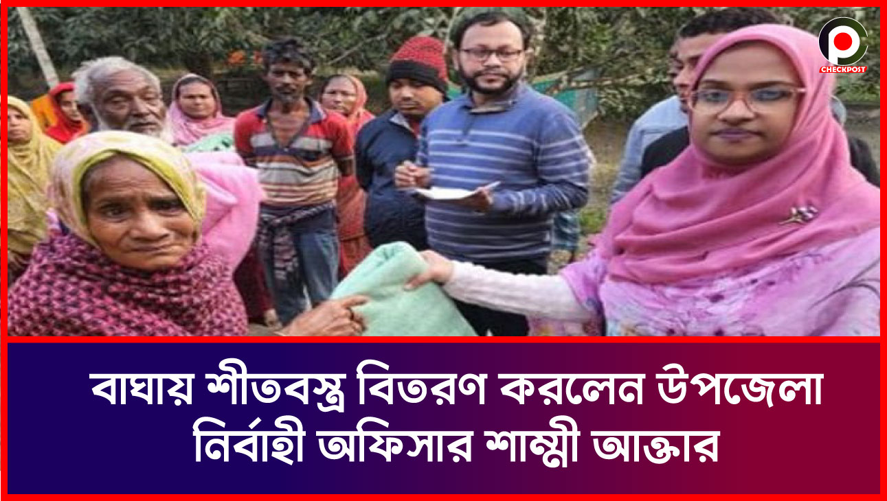 বাঘায় শীতবস্ত্র বিতরণ করলেন উপজেলা নির্বাহী অফিসার শাম্মী আক্তার