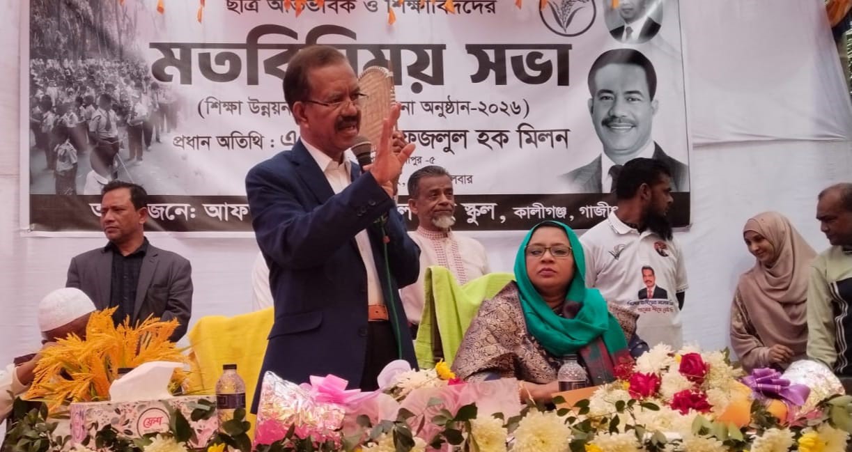 গাজীপুর-৫ (কালীগঞ্জ, পুবাইল, বাড়িয়া) আসনে বিএনপির মনোনীত প্রার্থী জেলা বিএনপির আহ্বায়ক একেএম ফজলুল হক মিলনের কালীগঞ্জ পৌর দেওপাড়া (মুলগাঁও) এলাকায় আফতাব উদ্দিন মডেল উচ্চ বিদ্যালয় মাঠে সকাল ১১ ঘটিকার সময় অত্র বিদ্যালয়ের অভিভাবক ও শিক্ষার্থীদের সঙ্গে মতবিনিময় সভা অনুষ্ঠিত হয়েছে।