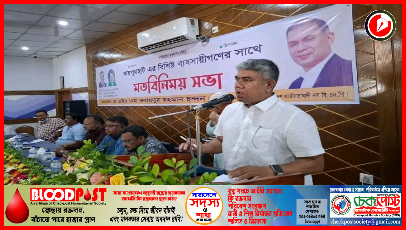জয়পুরহাটে স্থানীয় ব্যবসায়ীদের সাথে এক মতবিনিময় সভায় বিএনপির রাজশাহী বিভাগীয় সহ-সাংগঠনিক সম্পাদক এ এইচ এম ওবায়দুর রহমান চন্দন বলেছেন, “আমরা প্রতিহিংসার রাজনীতি চাই না। বিএনপি চায় ভালোবাসা, উদারতা ও সম্প্রীতির ভিত্তিতে একটি ব্যবসাবান্ধব পরিবেশ গড়ে তুলতে।”