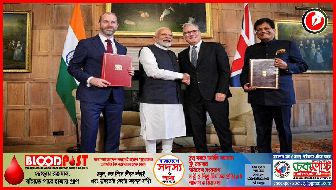 ভারত ও যুক্তরাজ্যের মধ্যে বহু প্রতীক্ষিত ‘মুক্ত বাণিজ্য চুক্তি’ (FTA) বৃহস্পতিবার স্বাক্ষরিত হয়েছে। এই চুক্তিতে স্বাক্ষর করেন ভারতের কেন্দ্রীয় বাণিজ্য ও শিল্পমন্ত্রী পীযূষ গোয়েল এবং ব্রিটিশ বাণিজ্যমন্ত্রী জোনাথন রেনল্ডস।