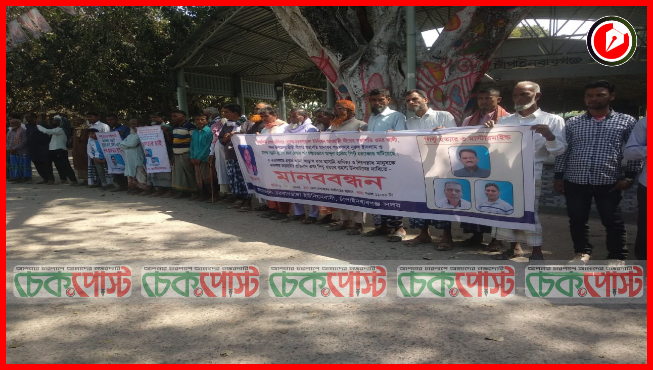 রবিবার, চাঁপাইনবাবগঞ্জ জেলা প্রশাসকের কার্যালয়ের সামনে "চরবাগডাঙ্গা ইউনিয়নবাসী" ব্যানারে এই মানববন্ধন অনুষ্ঠিত হয়। তবে এতে অংশ নেয় মূলত টিপু চেয়ারম্যানের ঘনিষ্ঠজন ও তার সন্ত্রাসী কর্মকাণ্ডে সহযোগী ব্যক্তিরা। স্থানীয়রা মনে করছেন, দীর্ঘদিন ধরে মাদক ও সন্ত্রাসী কার্যক্রম চালিয়ে আসা টিপু ও তার দোসররা প্রশাসনকে বিভ্রান্ত করতে নানান ষড়যন্ত্র করছে।