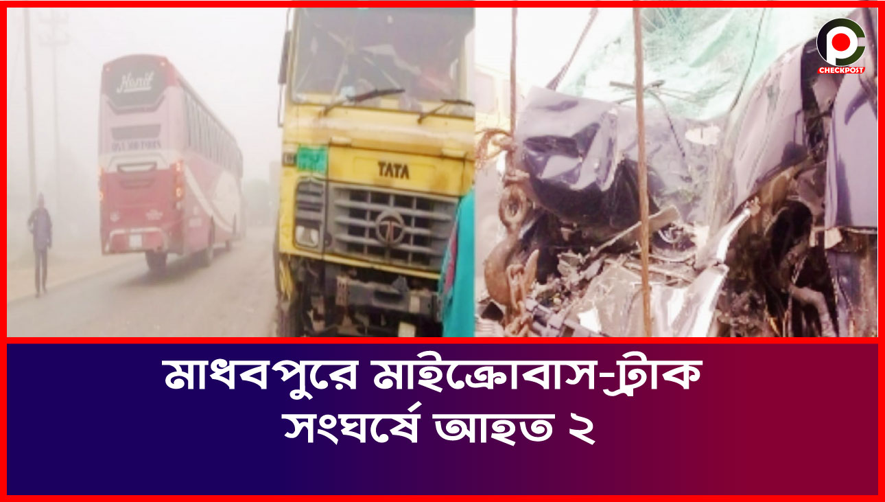 মাধবপুরের ঢাকা-সিলেট মহাসড়কে ঘন কুয়াশার মধ্যে মাইক্রোবাসের সঙ্গে একটি ট্রাকের মুখোমুখি সংঘর্ষে দু'জন আহত হয়েছেন।