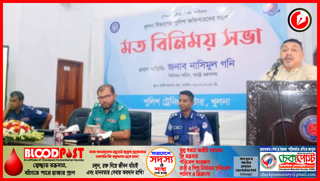 বৃহস্পতিবার (১ আগস্ট) সকালে খুলনা পুলিশ ট্রেনিং সেন্টারের (পিটিসি) অডিটোরিয়ামে খুলনা বিভাগের পুলিশ কর্মকর্তাদের সঙ্গে এক মতবিনিময় সভায় প্রধান অতিথির বক্তব্যে তিনি এসব কথা বলেন।