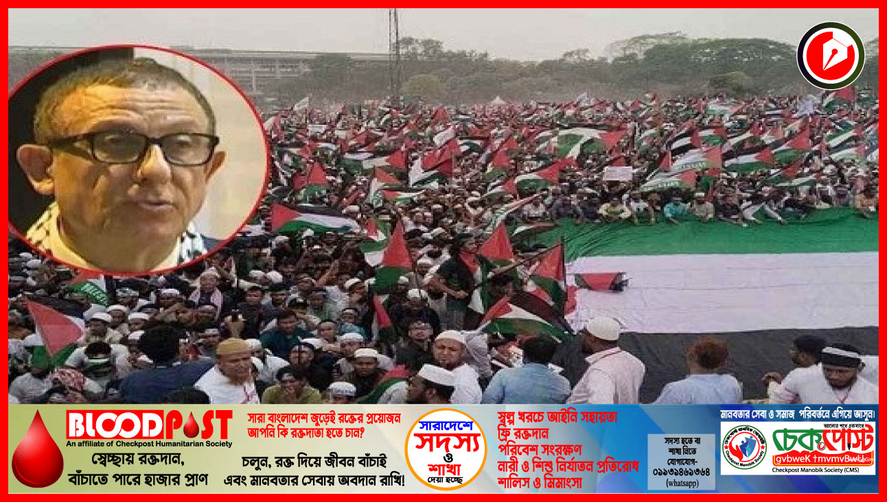 তিনি আরও বলেন, “বাংলাদেশের জনগণের প্রাণশক্তি এক অকাট্য সত্যকে তুলে ধরেছে— এই জাতি কেবল কথায় নয়, নীতিগতভাবে অন্যায়ের বিরুদ্ধে অবস্থান নেয়। পুরুষ, নারী, তরুণ, বৃদ্ধ— সবাই এক কণ্ঠে ফিলিস্তিনের স্বাধীনতার পক্ষে সোচ্চার হয়েছে।”