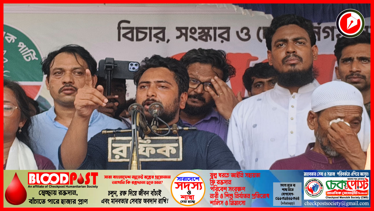 শুক্রবার দুপুরে এনসিপির ‘দেশ গড়তে জুলাই পদযাত্রা’ কর্মসূচির অংশ হিসেবে সুনামগঞ্জ শহরের আলফাত স্কয়ারে অনুষ্ঠিত এক পথসভায় এসব কথা বলেন তিনি। পথসভায় সভাপতিত্ব করেন সুনামগঞ্জ জেলা এনসিপির সমন্বয়কারী দেওয়ান সাজাউর রাজা চৌধুরী সুমন।