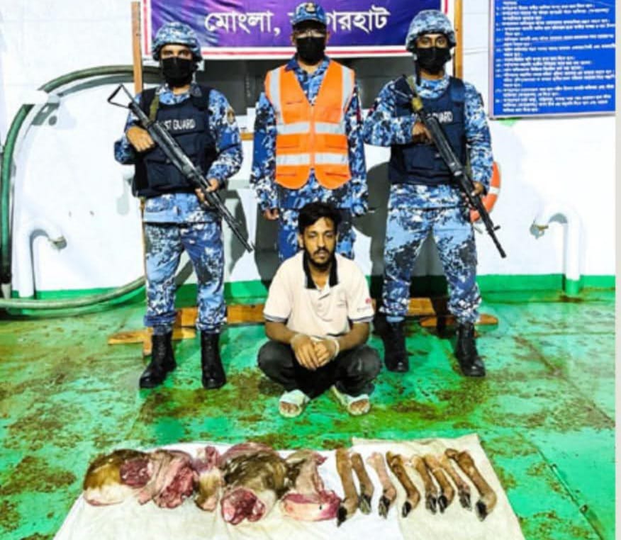 মোংলার জয়মনি সাইলো এলাকা থেকে কোস্টগার্ড ১০.৫ কেজি হরিনের মাংসসহ মো: হাসান (৩৪) নামে এক চোরা শিকারিকে আটক করেছে। শনিবার ২২ আগস্ট দুপুরে কোস্টগার্ডের মিডিয়া কর্মকর্তা লেফটেন্যান্ট কমান্ডার সিয়াম উল হক এ তথ্য নিশ্চিত করেছেন।