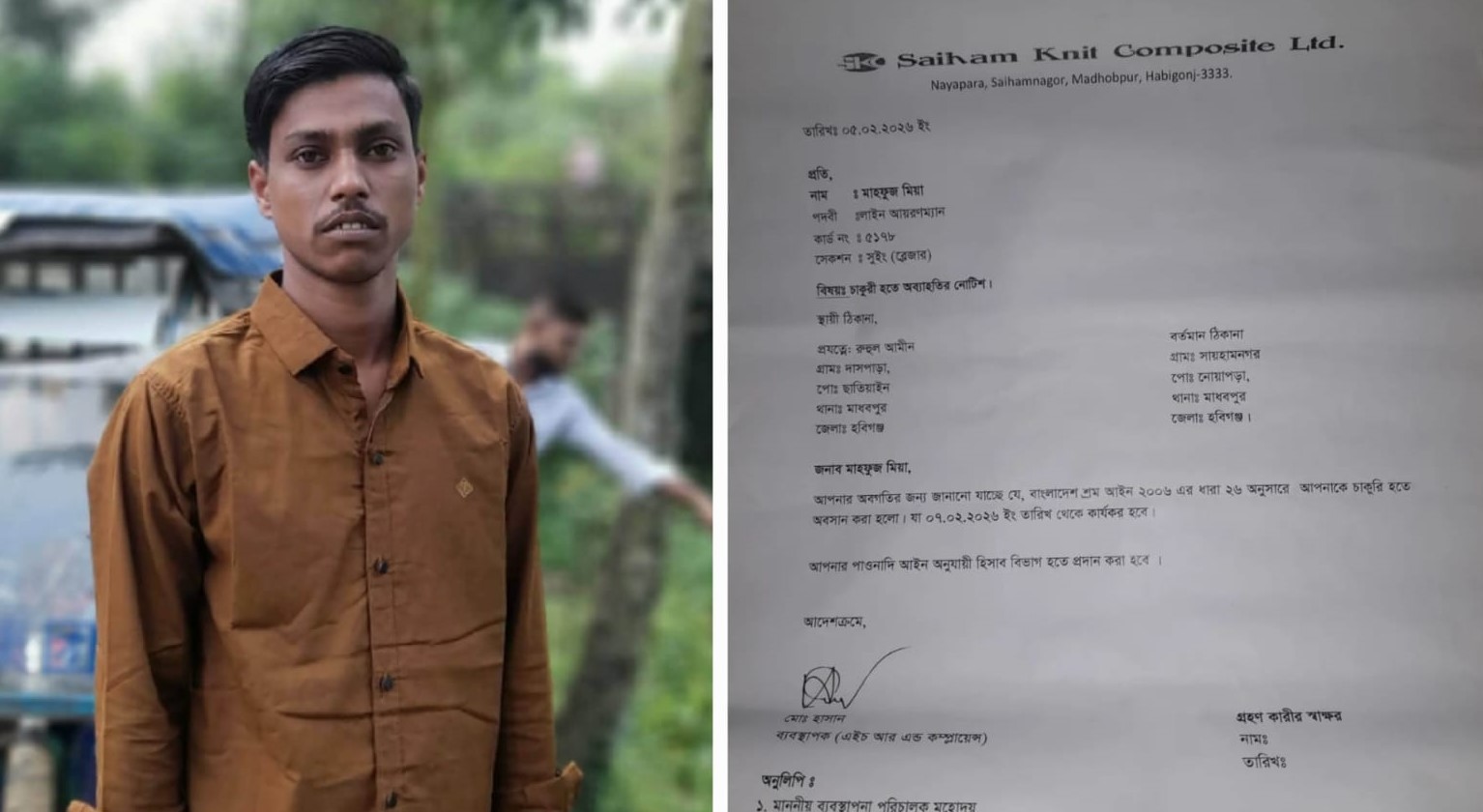 হবিগঞ্জ-৪ আসনের নির্বাচনী রাজনীতিকে কেন্দ্র করে একটি শিল্পপ্রতিষ্ঠানে শ্রমিক চাকরিচ্যুতির অভিযোগ উঠেছে। অভিযোগ অনুযায়ী, একটি নির্দিষ্ট প্রার্থীর পক্ষে রাজনৈতিক সমর্থনের কারণে সায়হাম গ্রুপের একটি প্রতিষ্ঠানের শ্রমিককে পরিকল্পিতভাবে চাকরি থেকে অব্যাহতি দেওয়া হয়েছে।