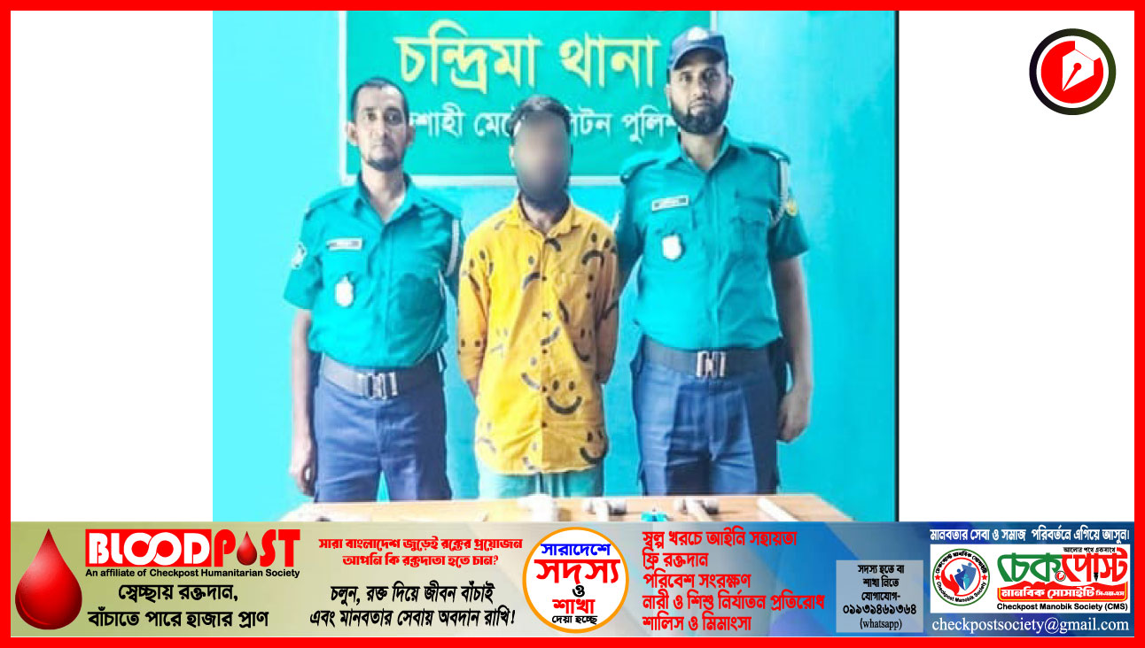 রাজশাহী মহানগরীর চন্দ্রিমা থানার ছোটবনগ্রাম পূর্বপাড়া বড় মসজিদ মোড় এলাকায় ছিনতাইয়ের প্রস্তুতিকালে দেশীয় অস্ত্রসহ এক ছিনতাইকারীকে গ্রেপ্তার করেছে রাজশাহী মেট্রোপলিটন পুলিশ (আরএমপি)।