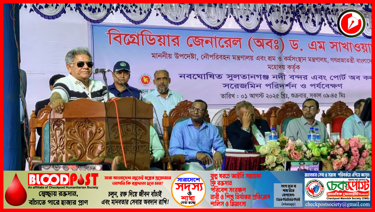 রাজশাহীর গোদাগাড়ীতে অবস্থিত সুলতানগঞ্জ নৌবন্দর ও পোর্ট অব প্রটোকল পরিদর্শন করেছেন নৌপরিবহন উপদেষ্টা ব্রিগেডিয়ার জেনারেল (অব.) ড. এম সাখাওয়াৎ হোসেন।