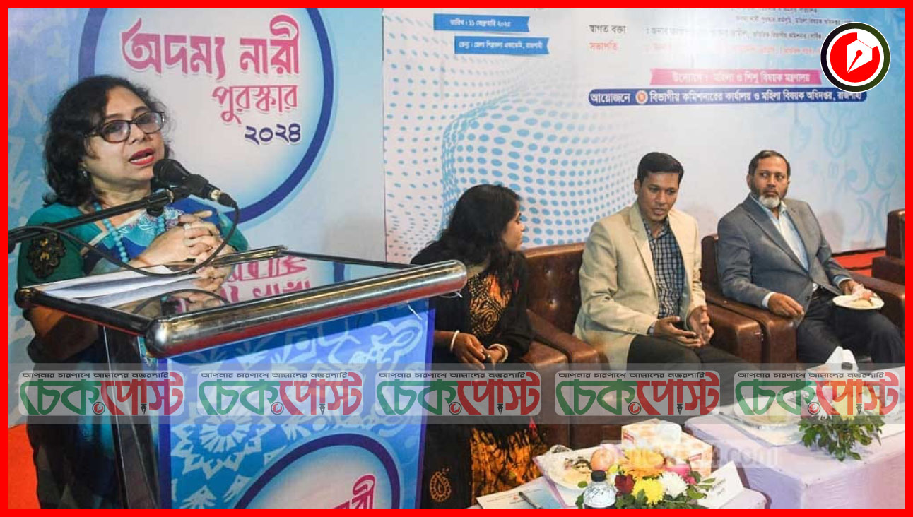 মহিলা ও শিশু বিষয়ক মন্ত্রণালয়ের উদ্যোগে রাজশাহী বিভাগে পাঁচজন অদম্য নারীকে সংবর্ধনা দেওয়া হয়েছে। রাজশাহী জেলা শিল্পকলা একাডেমি মিলনায়তনে “অদম্য নারী পুরস্কার-২০২৪” কার্যক্রমের আওতায় এই অনুষ্ঠান আয়োজন করা হয়।