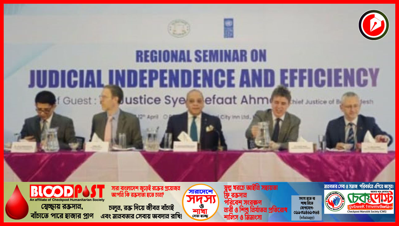 আজ শনিবার (১২ এপ্রিল) সকালে খুলনার হোটেল সিটি ইন-এ "Judicial Independence and Efficiency in Bangladesh" শীর্ষক রিজিওনাল সেমিনারে তিনি এ কথা বলেন। সেমিনারটি বাংলাদেশ সুপ্রীম কোর্ট ও UNDP-এর যৌথ উদ্যোগে আয়োজিত হয়।