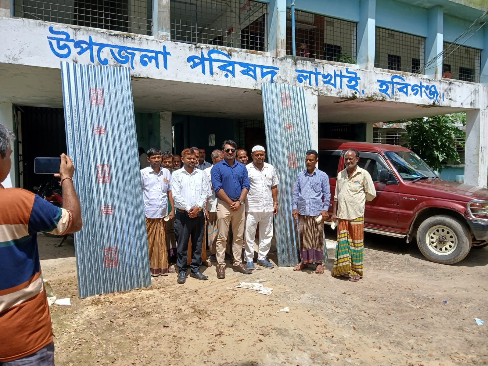 হবিগঞ্জ জেলার লাখাই উপজেলার লাখাই বাজারে অগ্নিকাণ্ডের ঘটনায় ক্ষতিগ্রস্ত ১৫ ব্যবসায়ীর মাঝে মঙ্গলবার নগদ অর্থ ও ঢেউটিন বিতরণ করা হয়েছে।
