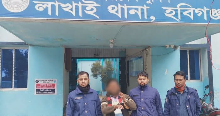 লাখাই থানার ভারপ্রাপ্ত কর্মকর্তা মোঃ জাহিদুল হক জানান, সোমবার (৫ ডিসেম্বর) দিবাগত রাতে তিনি, ওসি তদন্ত কৃষ্ণ চন্দ্র মিত্র, তদন্ত কর্মকর্তা উপপরিদর্শক আক্তারুজ্জামানসহ পুলিশ ফোর্স মুড়িয়াউক ইউনিয়নের লখনাউক গ্রামে অভিযান চালিয়ে মৃত আইয়ুব আলীর ছেলে জাহাঙ্গীর আলম (৩৯)–কে গ্রেপ্তার করেন।