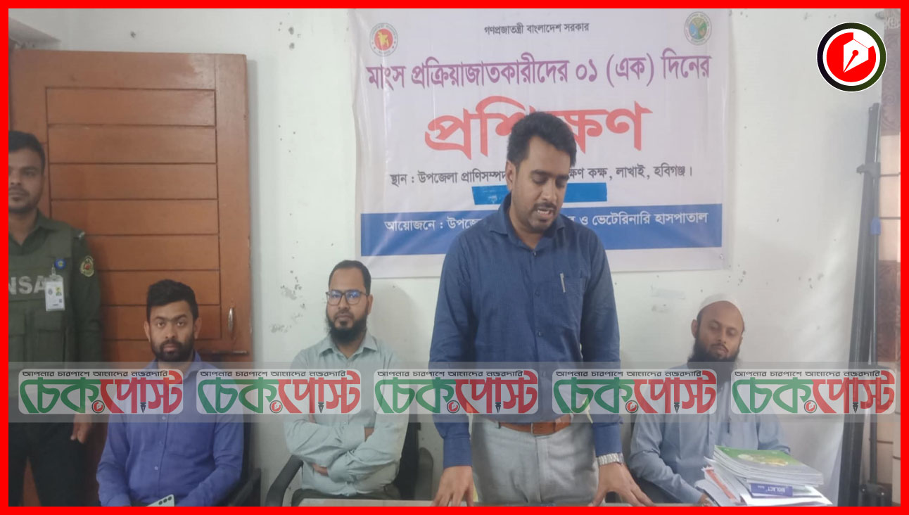 লাখাইয়ে উপজেলা প্রাণী সম্পদ অধিদপ্তরের আয়োজনে উপজেলার বিভিন্ন হাটবাজারে মাংস প্রক্রিয়াজাতকরণের সঙ্গে জড়িত প্রক্রিয়াজাতকারীদের জন্য একদিনের প্রশিক্ষণ অনুষ্ঠিত হয়েছে।