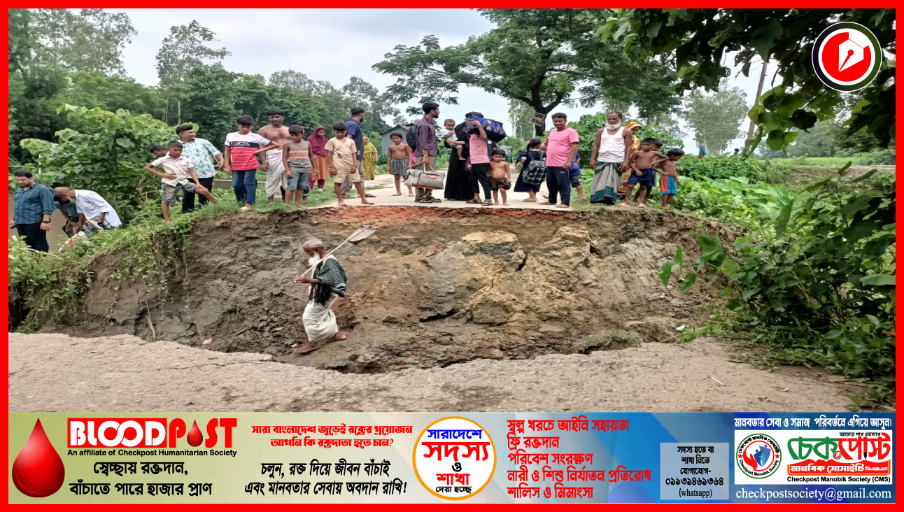 এতে সড়কের উভয় পাশে যানবাহন ও পথচারীরা আটকা পড়ে যান। এই সড়কে নিয়মিত চলাচল করে সিএনজি চালিত অটোরিকশা, ইজিবাইকসহ বিভিন্ন যানবাহন। সড়ক ভেঙে পড়ায় সাধারণ মানুষ ও ব্যবসায়ীরা পণ্য পরিবহনসহ নানাভাবে ভোগান্তির শিকার হচ্ছেন।