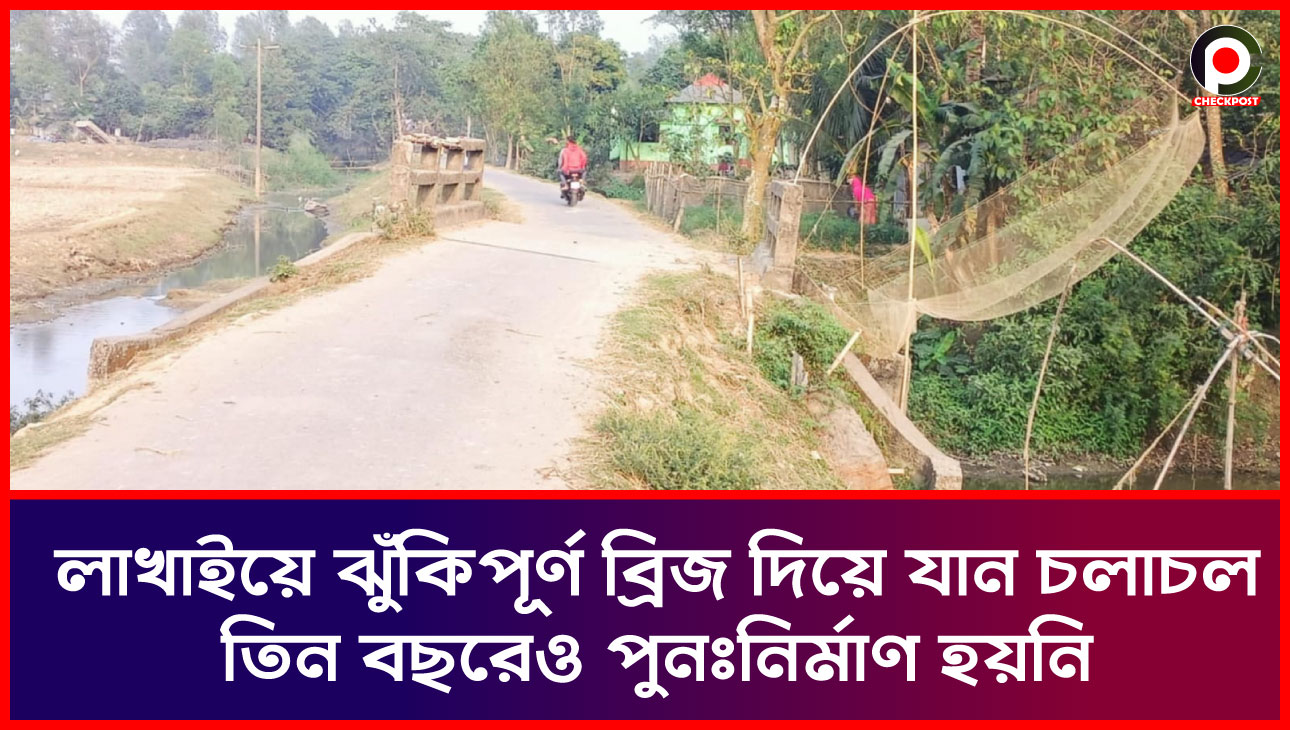 লাখাইয়ে ঝুঁকিপূর্ণ ব্রিজ দিয়ে যান চলাচল, তিন বছরেও পুনঃনির্মাণ হয়নি