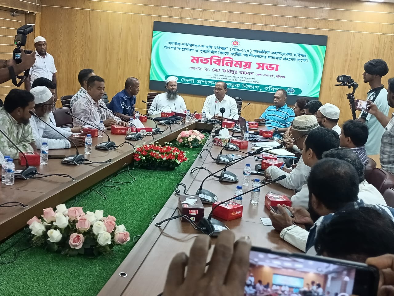 নাসিরনগর-সরাইল-লাখাই-হবিগঞ্জ আঞ্চলিক মহাসড়ক (আর-২২০) হবিগঞ্জ অংশের সম্প্রসারণ ও পুনঃনির্মাণ বিষয়ে স্থানীয় অংশীজনদের মতামত গ্রহনের জন্য মতবিনিময় সভা অনুষ্ঠিত হয়েছে। সোমবার (১৮ আগস্ট) বিকেলে জেলা প্রশাসকের সম্মেলন কক্ষে সভায় সভাপতিত্ব করেন হবিগঞ্জ জেলা প্রশাসক ড. মোঃ ফরিদুর রহমান।