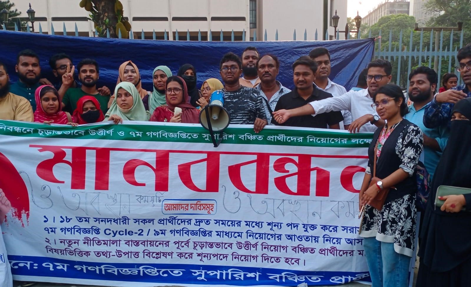 মঙ্গলবার (কর্মসূচির শেষ দিন) কয়েক হাজার প্রার্থী আন্দোলনে অংশ নেন। তারা প্ল্যাকার্ড, ব্যানার এবং স্লোগানের মাধ্যমে দ্রুত নিয়োগ প্রক্রিয়া সম্পন্ন করার দাবি জানান। অনেকেই বলেন, বছরের পর বছর অপেক্ষা করেও নিয়োগ না পাওয়ায় তাদের পেশাগত ও ব্যক্তিগত জীবন চরম অনিশ্চয়তার মধ্যে পড়েছে।