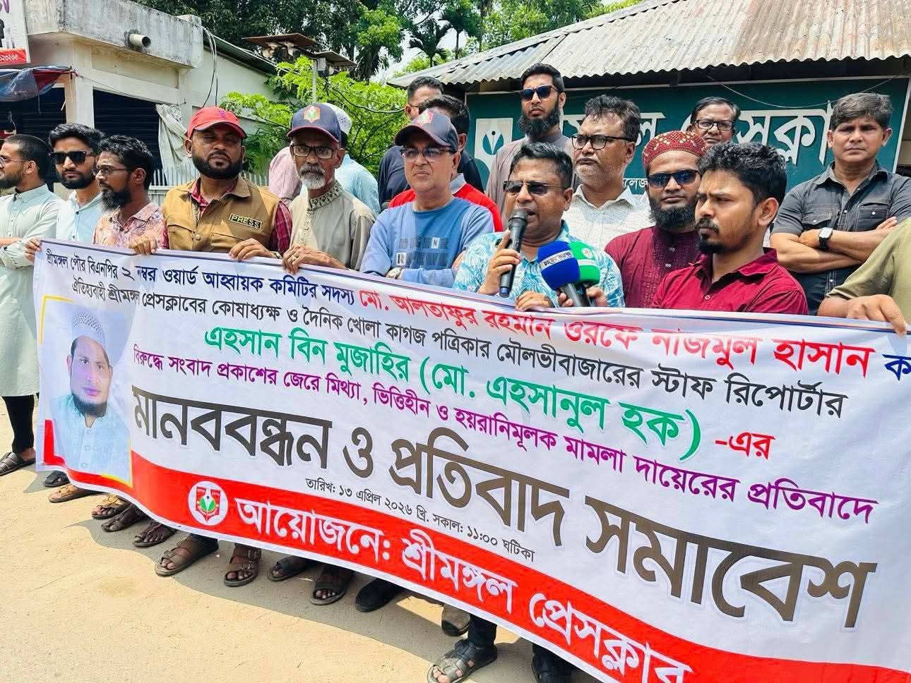 সংবাদ প্রকাশের জেরে সাংবাদিক এহসান বিন মুজাহিরের বিরুদ্ধে মিথ্যা মামলা প্রত্যাহারের দাবিতে শ্রীমঙ্গলে মানববন্ধন ও প্রতিবাদ সমাবেশ