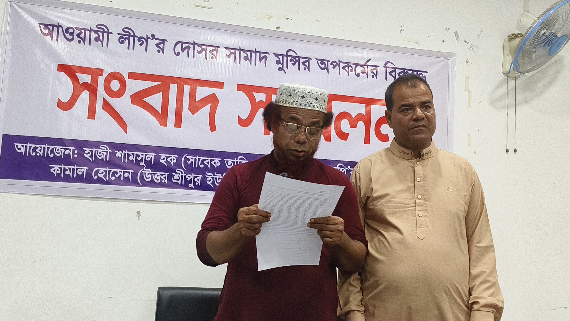 সংবাদ সম্মেলনে হাজী শামসুল হক ও কামাল হোসেন বলেন, “একজন বিতর্কিত ও দুর্নীতিবাজ ব্যক্তিকে ইউনিয়ন বিএনপির নেতৃত্বে জায়গা দেওয়া হলে সংগঠনের ক্ষতি হবে।” তাই তারা সামাদ মুন্সীর মনোনয়নপত্র বাতিলের দাবি জানান।