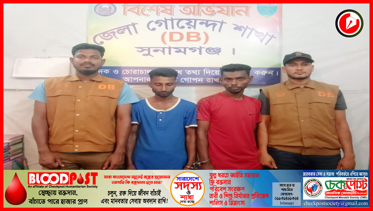 সুনামগঞ্জে মাদকবিরোধী অভিযানে ৪২ পিস ইয়াবাসহ দুই মাদক কারবারিকে গ্রেফতার করেছে জেলা গোয়েন্দা (ডিবি) পুলিশ। গ্রেফতারকৃতরা হলেন সুনামগঞ্জ সদর উপজেলার ইকবালনগর এলাকার তাজুল ইসলাম (৩০) এবং ওয়েজখালী গ্রামের মো. রুবেল ইসলাম (২৬)।