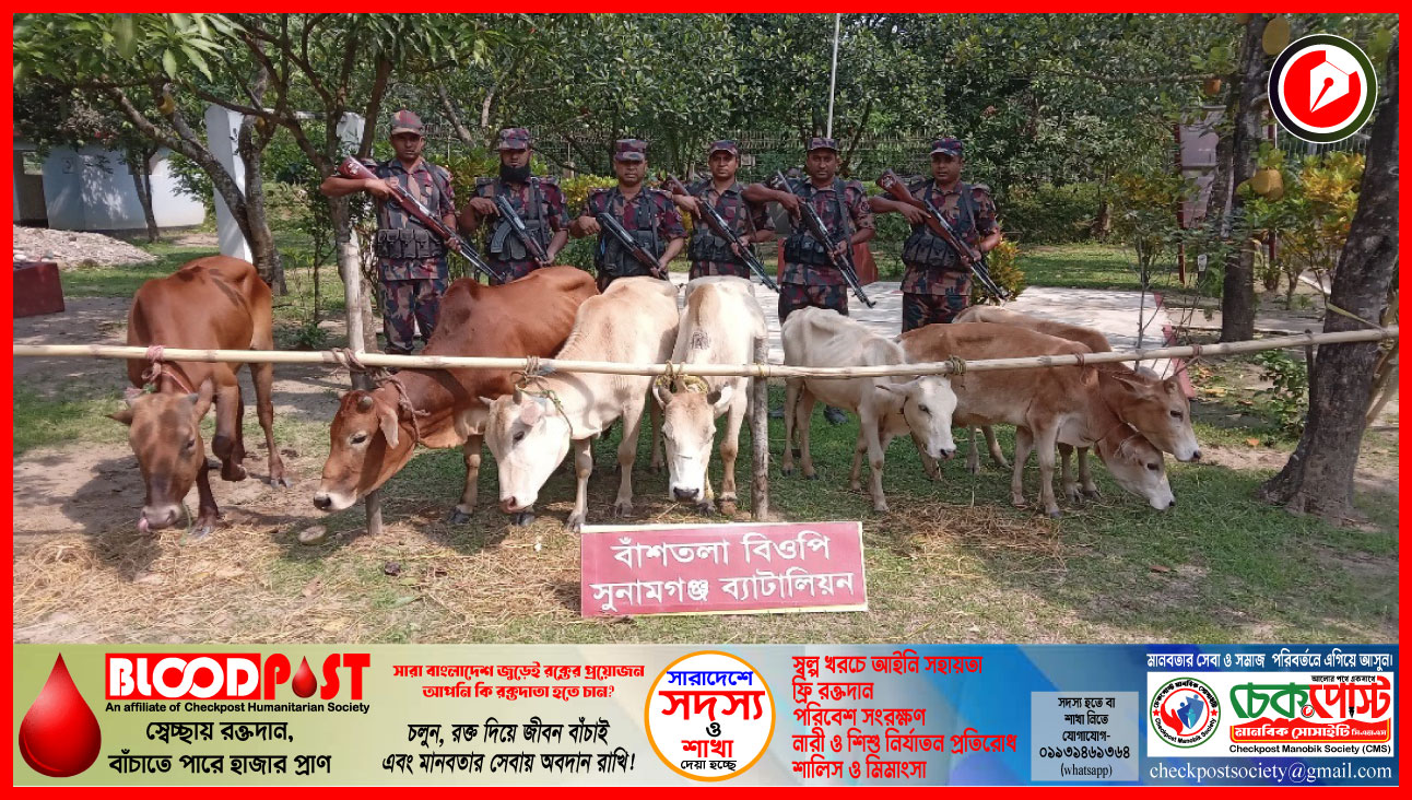 জানা যায়, দোয়ারাবাজার উপজেলার বাংলাবাজার ইউনিয়নের পেকপাড়া বিওপি কর্তৃক সীমান্ত পিলার ১২২৮/৩-এস হতে আনুমানিক ৫০ গজ বাংলাদেশের অভ্যন্তরে পশ্চিম পেকপাড়া এলাকা থেকে মালিকবিহীন অবস্থায় ৪টি ভারতীয় গরু আটক করা হয়, যার আনুমানিক মূল্য ৪ লাখ ৬০ হাজার টাকা। অন্যদিকে বাঁশতলা বিওপি কর্তৃক সীমান্ত পিলার ১২৩৩/৩-এস হতে আনুমানিক ২০০ গজ বাংলাদেশের অভ্যন্তরে দক্ষিণ কলোনী এলাকা থেকে আরও ৭টি ভারতীয় গরু আটক করা হয়, যার আনুমানিক মূল্য ৪ লাখ ৫০ হাজার টাকা।