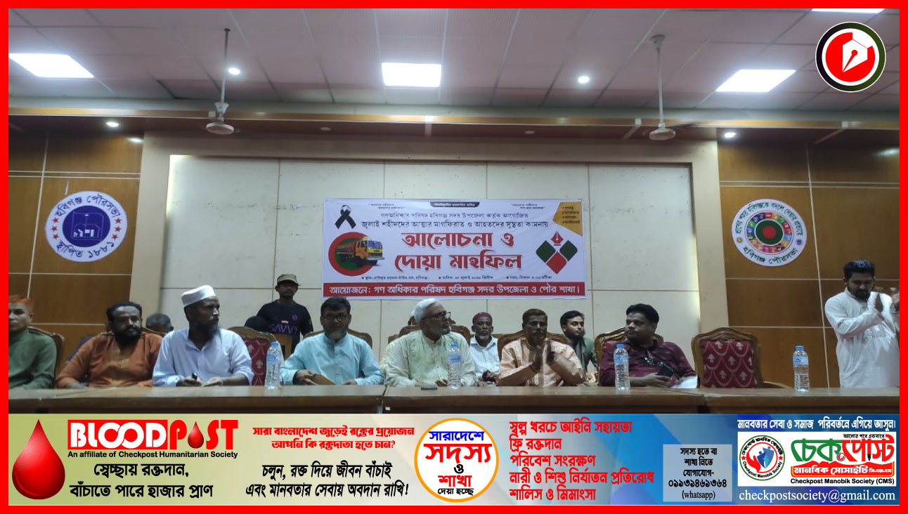 হবিগঞ্জ সদর উপজেলা গণঅধিকার পরিষদের উদ্যোগে এক আলোচনা সভা ও দোয়া মাহফিল অনুষ্ঠিত হয়েছে। শুক্রবার (২৫ জুলাই ২০২৫) বিকেল ৫টায় হবিগঞ্জ পৌর টাউন হলে এ অনুষ্ঠানের আয়োজন করা হয়। পবিত্র কোরআন তেলাওয়াতের মাধ্যমে অনুষ্ঠানের সূচনা হয়।