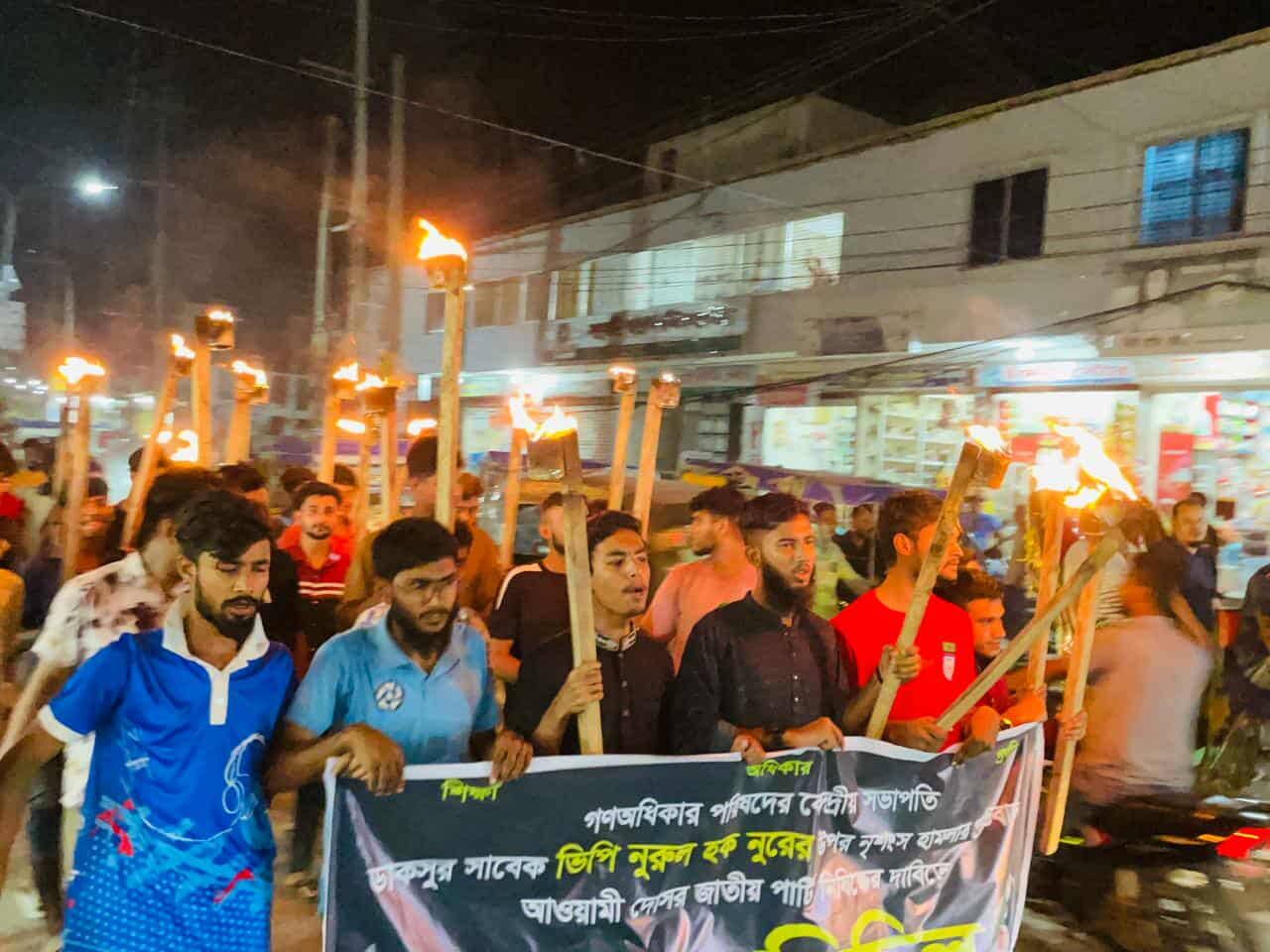 হবিগঞ্জে ছাত্র অধিকার পরিষদের নেতাকর্মীরা সভাপতি ও ডাকসুর সাবেক ভিপি নুরুল হক নুরের উপর হামলার প্রতিবাদে মশাল মিছিল, সড়ক অবরোধ ও বিক্ষোভ কর্মসূচী পালন করেছেন।