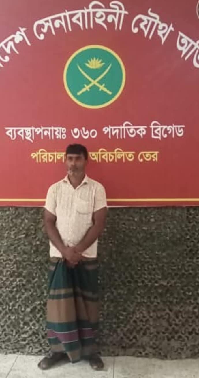 ২৪ আগস্ট (রবিবার) বিকেল ৩টার দিকে শহরের বেবী স্ট্যান্ড এলাকা থেকে সেনা সদস্যরা তাকে আটক করেন।