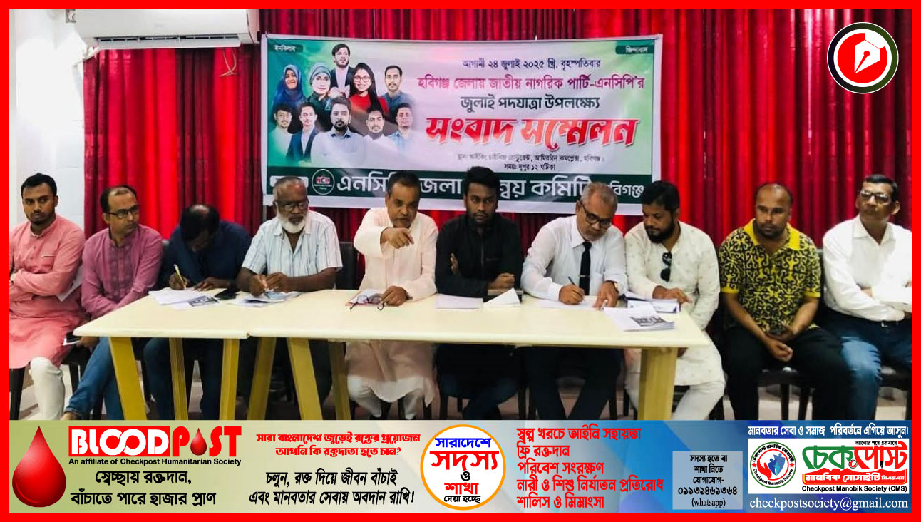 সংবাদ সম্মেলনে আরও উপস্থিত ছিলেন এনসিপির উত্তরাঞ্চলীয় সংগঠক ও হবিগঞ্জ জেলা সমন্বয়কারী নাহিদ উদ্দিন তারেক, সদস্য অ্যাডভোকেট ফখরুদ্দিন আহমেদ, একেএম নাসিম প্রমুখ।