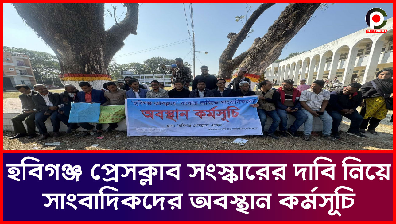 হবিগঞ্জ প্রেসক্লাব সংস্কারের দাবি নিয়ে সাংবাদিকদের অবস্থান কর্মসূচি