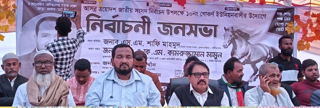 গোকর্ণ ০১ নম্বর ওয়ার্ড বিএনপির সাবেক সাধারণ সম্পাদক মো. ইদ্রিস খাঁনের সভাপতিত্বে এবং গোকর্ণ ইউনিয়ন বিএনপির সাবেক ক্ষুদ্র ও সমবায় বিষয়ক সম্পাদক মিজানুর রহমানের সঞ্চালনায় অনুষ্ঠিত জনসভায় প্রধান অতিথি হিসেবে বক্তব্য রাখেন ভাটি অঞ্চলের গর্ব, কিংবদন্তি নেতা, বিএনপির সাবেক বিপ্লবী নেতা ও সাবেক জাতীয় সংসদ সদস্য এস এম শাফি মাহমুদ।